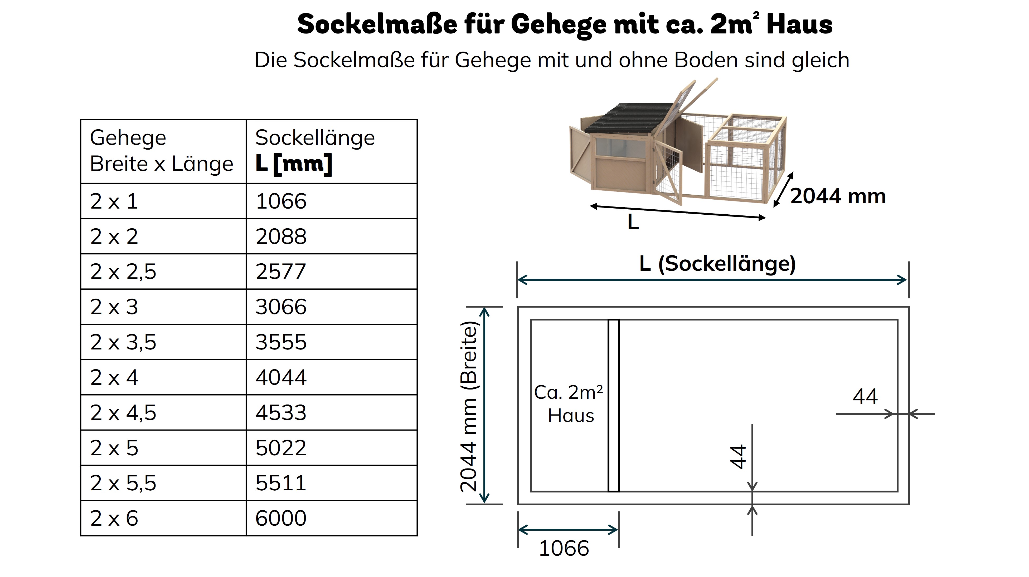 | Länge x Breite: | 3m x 2m, 4m x 2m, 5m x 2m, 6m x 2m |