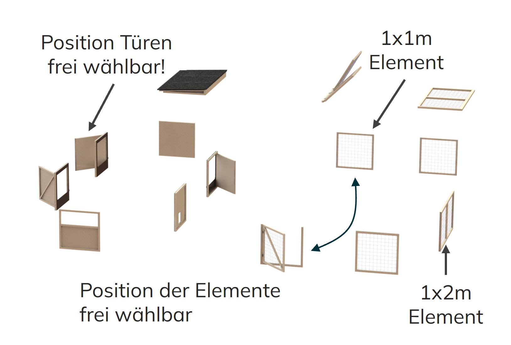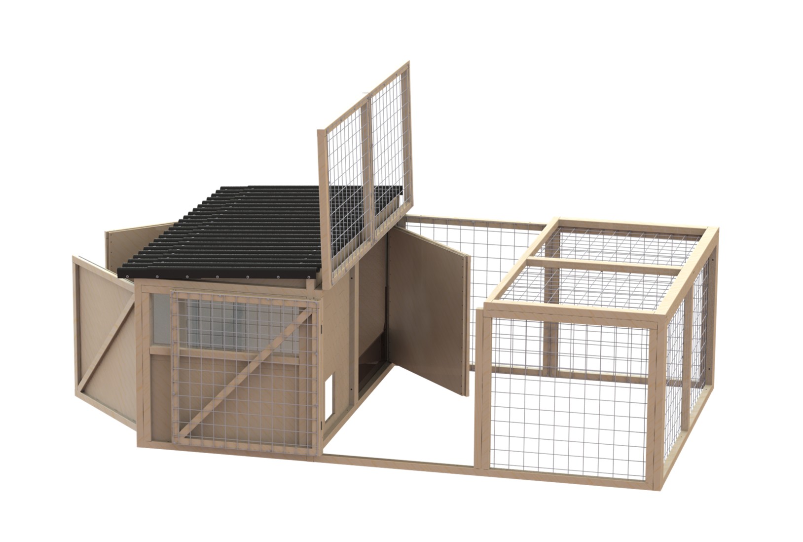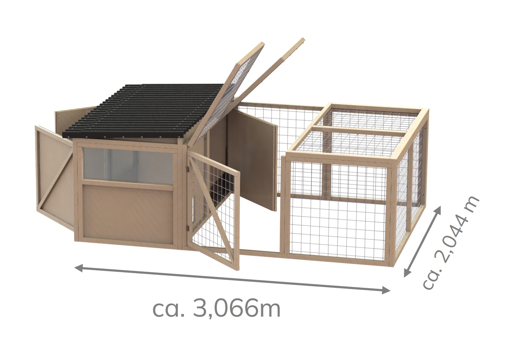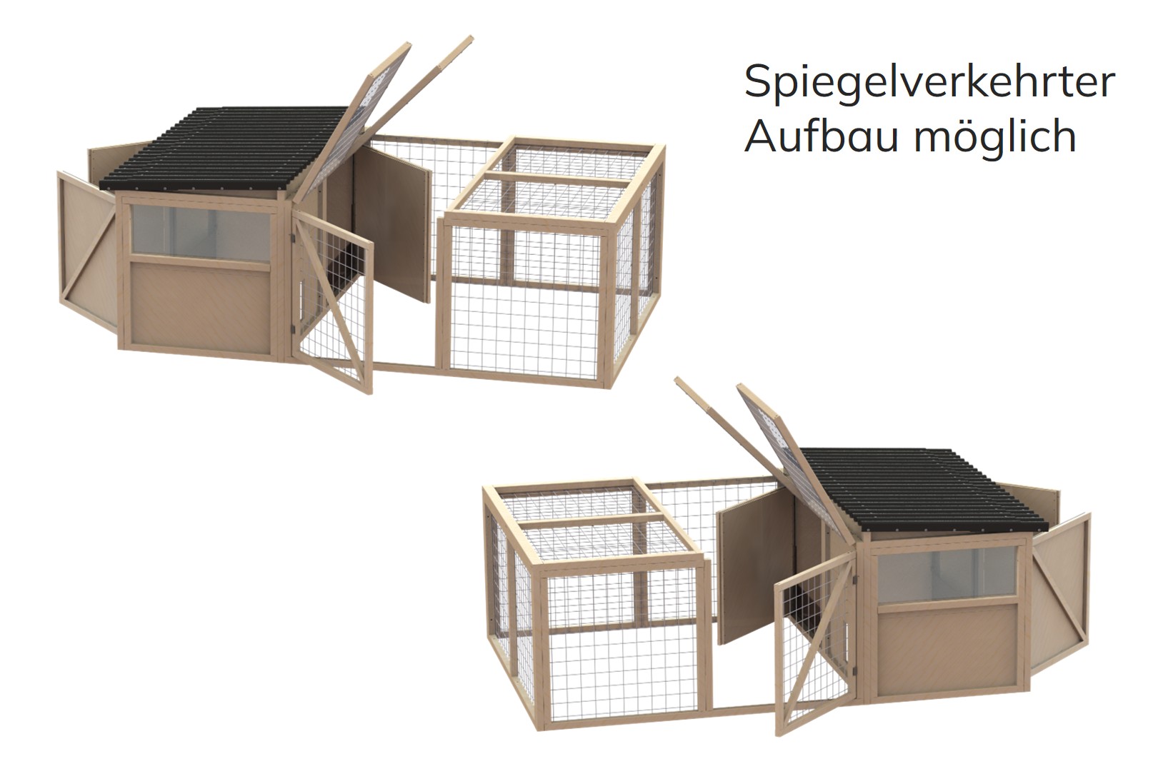 Das Klappdach ermöglicht einen bequemen Zugang zu den Tieren. Die Gehege eignen sich zur Haltung von Kaninchen, Hühnern, Meerschweinchen und vielen anderen Kleintieren