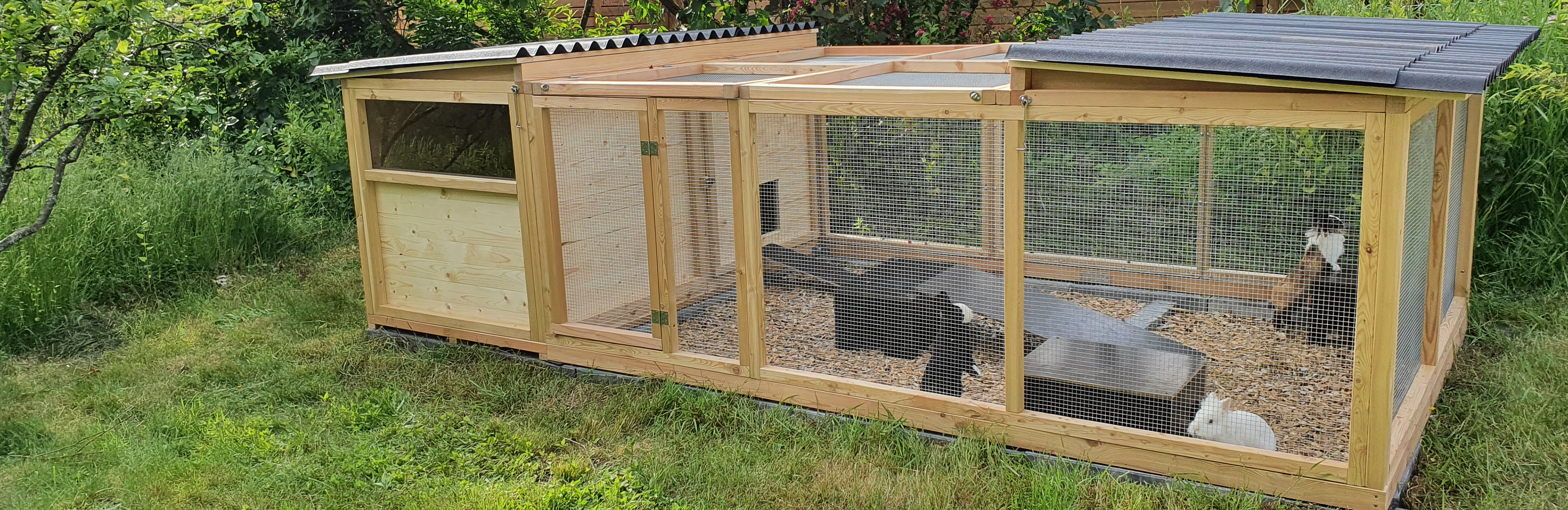 Unterkonstruktion: Die fertig montierte Unterkonstruktion ist ca. 7 cm hoch und so gestaltet, dass Luft unter dem Boden zirkulieren kann. So wird Schimmelbildung vermieden. Das Anschließende Gehege erhält einen 7 cm Rahmen, der an die Unterkonstruktion anschließt.